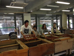 平成27年6月16日、第4回研修旅行として、土佐和紙工芸村で和紙作りに挑戦しました。